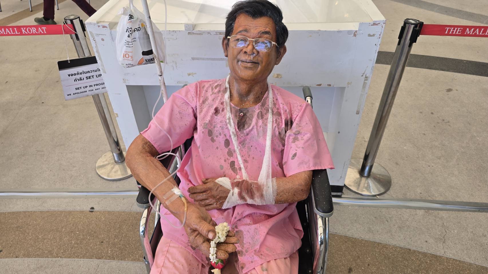 นครราชสีมา-"ฮาโลวีนยังไม่ทันมา โคราชแตกตื่น คนหน้าคล้ายคนดังประเทศเพื่อนบ้าน นั่งรถเข็นคนไข้ ชุดสีชมพูเลือดท่วม &nd...