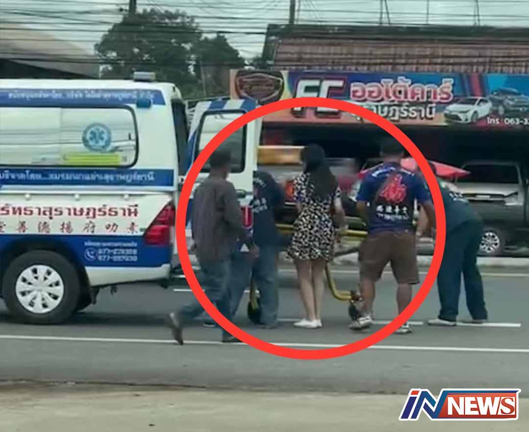 สุราษฎร์ธานี-ชื่นชมพยาบาลทหารสาวสวยน้ำใจงามนอกเครื่องแบบ จอดรถช่วยเหลือคนเจ็บกลางท้องถนน