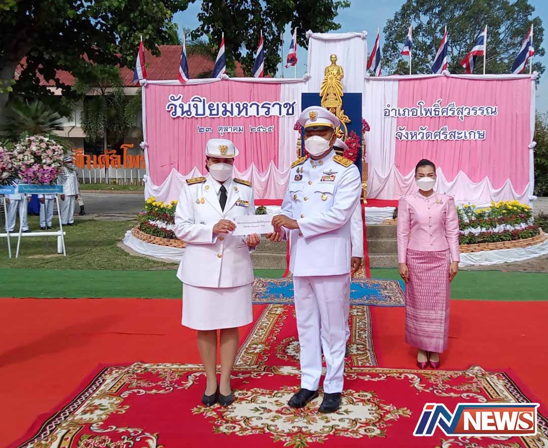 นายอำเภอโพธิ์ศรีสุวรรณรับมอบเงินสมทบกองทุนวันปิยมหาราช