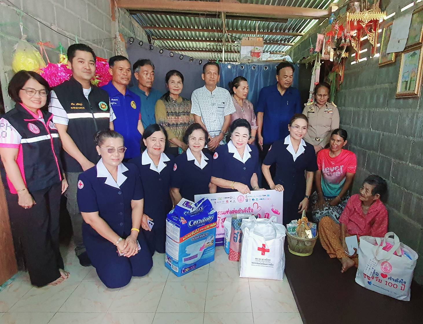 เหล่ากาชาดโคราชเยี่ยม'ยายอายุ100ปี' ในพื้นที่ตำบลเมืองใหม่โครกกรวด