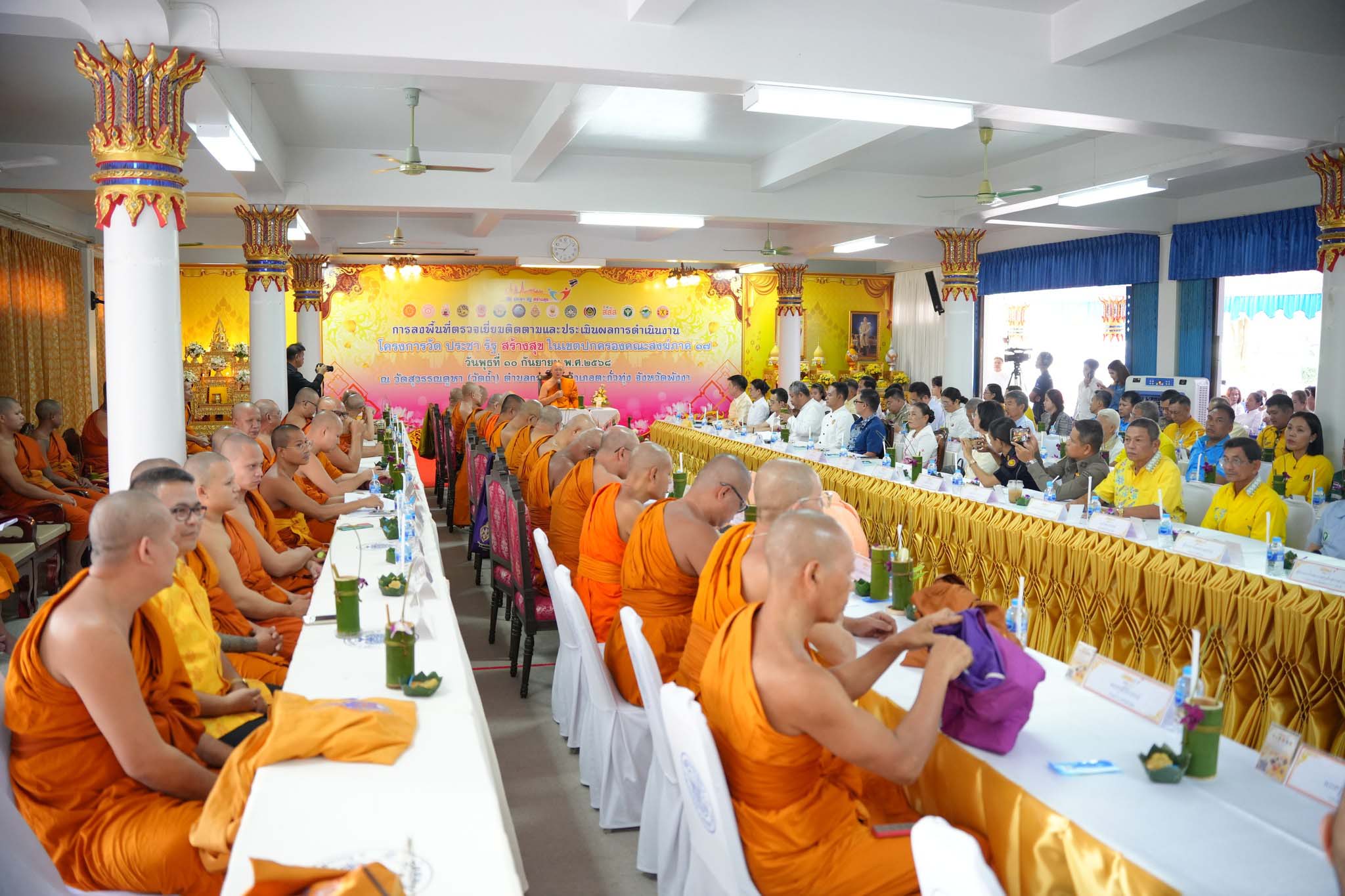 พังงา-เจ้าคณะภาค17 นำทีมติดตามประเมินผลการดำเนินงานวัดต้นแบบระดับภาค โครงการวัด ประชา รัฐ สร้างสุข ที่วัดสุวรรณคูหา