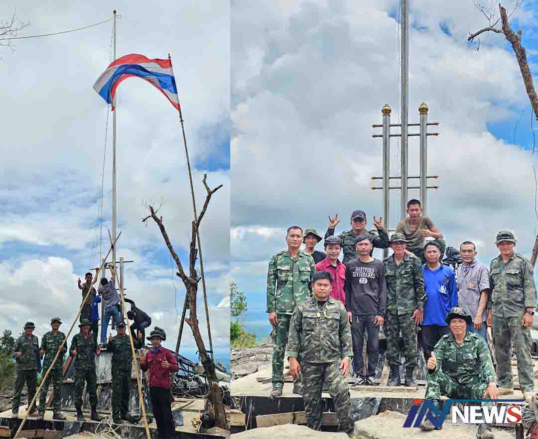 ศรีสะเกษ-สุดภูมิใจ ครั้งหนึ่งในชีวิต ช่างสแตนเลส และทีมงาน ได้ขึ้นไปติดตั้งเสาธงที่ภูมะเขือ จารึกประวัติศาสตร์