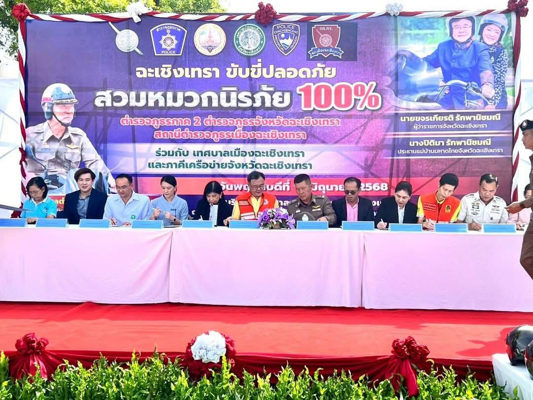 ภาคีเครือข่ายแปดริ้วร่วมลงนามเอ็มโอยู ถนนปลอดภัยสวมหมวกนิรภัย100%