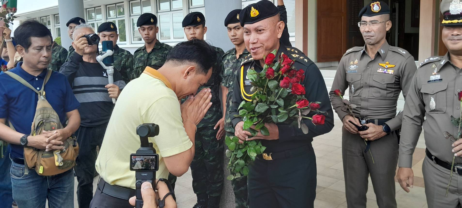 กลุ่มคนรักชาติสงขลารวมตัวมอบดอกไม้ แก่ทหารเพื่อเป็นขวัญกำลังใจ