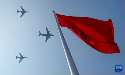 ฝูงเครื่องบินรบจีนบินเหนือจัตุรัสเทียนอันเหมิน