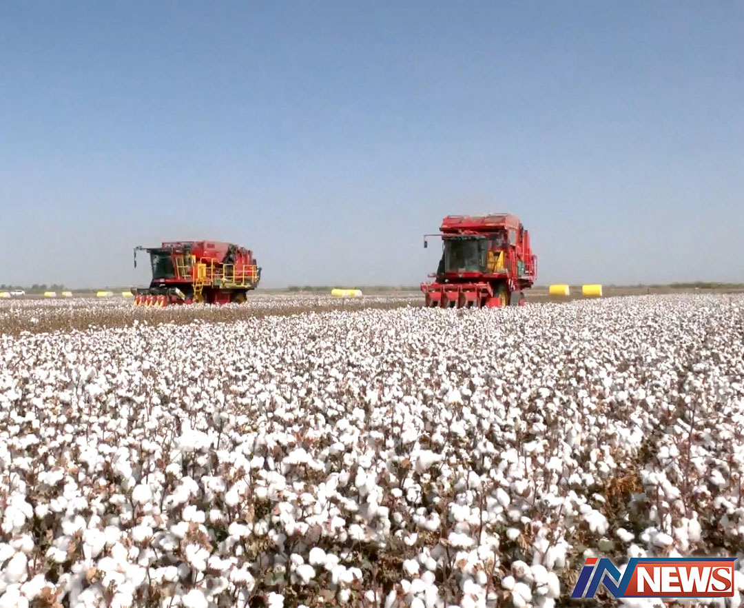 เกษตรกรในเขตปกครองตนเองซินเจียงอุยกูร์ของจีนเก็บเกี่ยวฝ้ายในพื้นที่เพาะปลูกกว่า 1ล้านไร่ อันเป็นผลจากการนำเครื่องจักรมาใ...