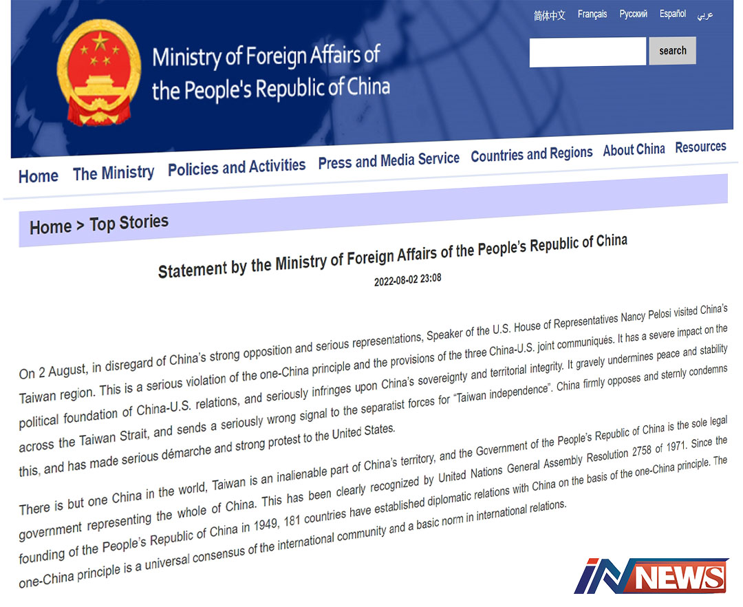 จีนประกาศคว่ำบาตรประธานสภาผู้แทนราษฎรสหรัฐฯ และสมาชิกในครอบครัว หลังเดินทางเยือนไต้หวัน ไม่สนคำค้านจากจีน