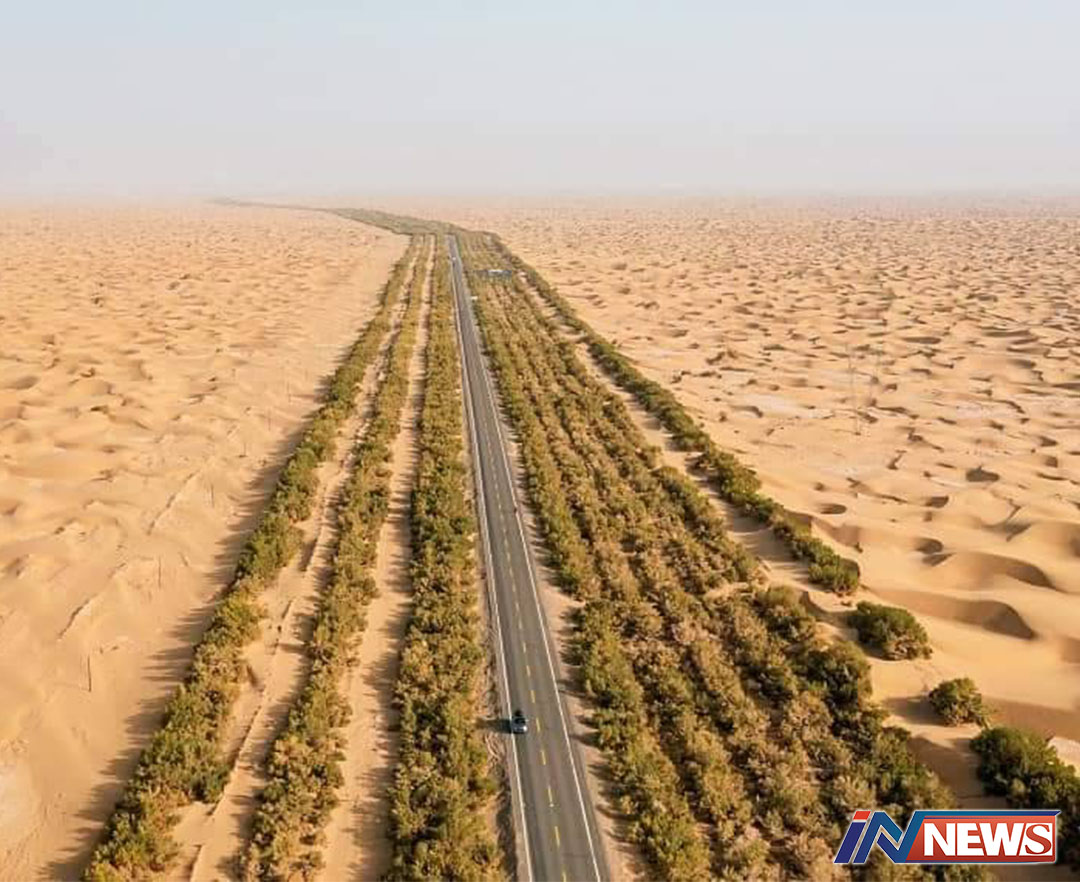 ทางหลวงตัดข้ามทะเลทรายที่ใหญ่ในจีน บรรลุผล'คาร์บอนเป็นศูนย์'