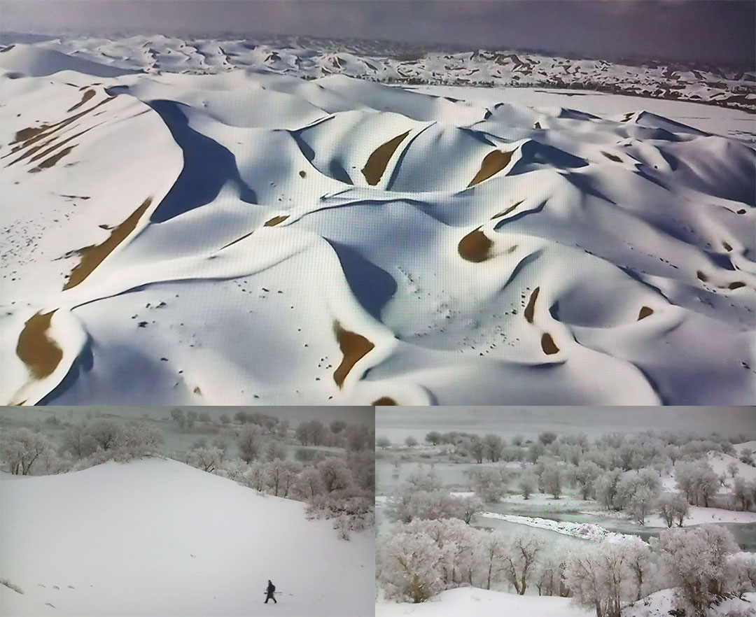 จีน-CMGชวนชมภาพ ดินแดนมหัศจรรย์แห่งฤดูหนาวท่ามกลางผืนทะเลทราย เขตปกครองตนเองซินเจียง ประเทศจีน