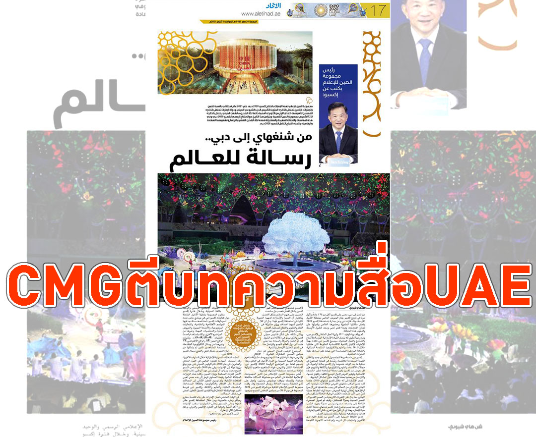 จีน-ผู้อำนวยการสื่อหลักของจีน (CMG) ตีพิมพ์บทความในสื่อหลักของ UAE แสดงความยินดีในการจัดงาน Dubai World Expo พร้อมตอกย้ำ...