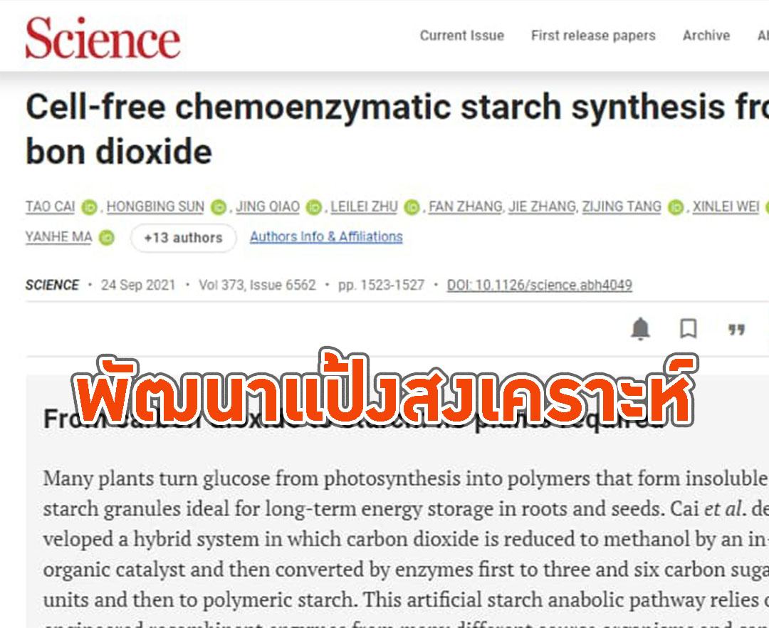 นักวิทยาศาสตร์ชาวจีนประสบความสำเร็จ พัฒนาแป้งสังเคราะห์สำเร็จปท.แรก