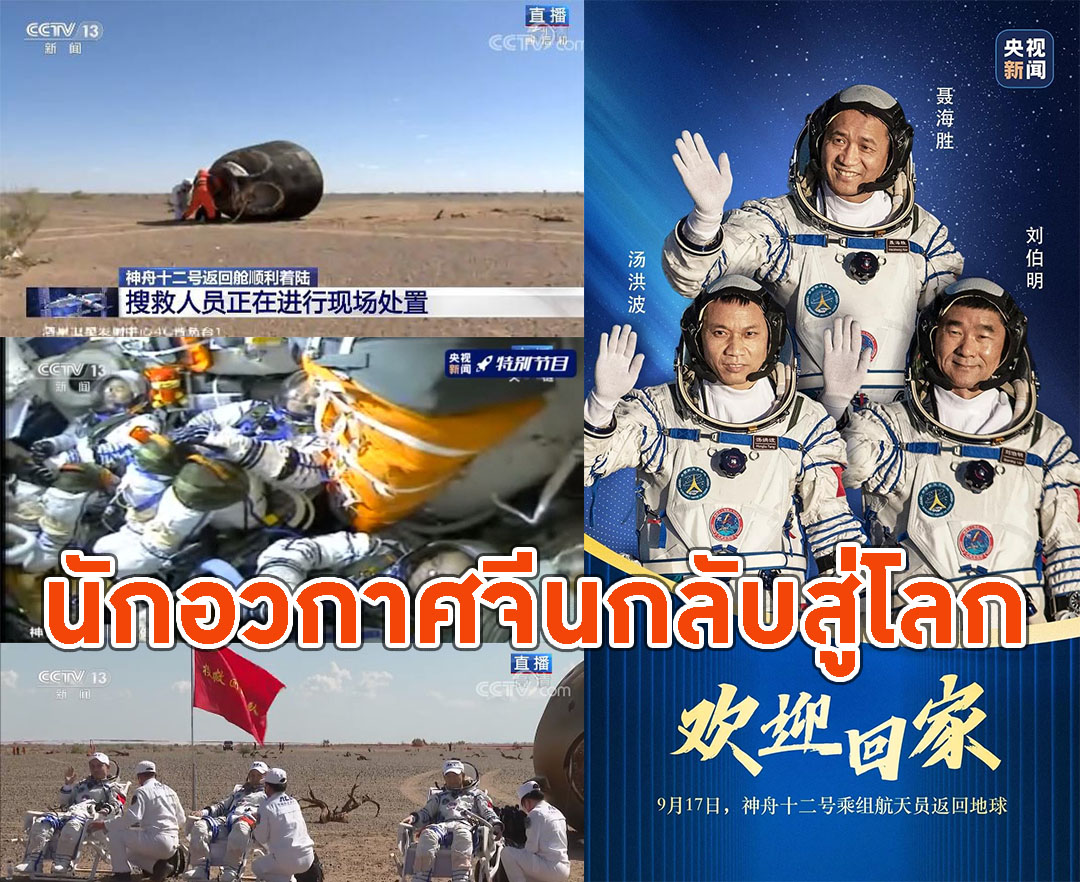 จีน-ยานอวกาศเสินโจว 12 พร้อมนักบินอวกาศจีน 3 นาย เดินทางกลับสู่โลกอย่างปลอดภัย พร้อมการต้อนรับอย่างอบอุ่นจากชาวจีน จนเกิ...