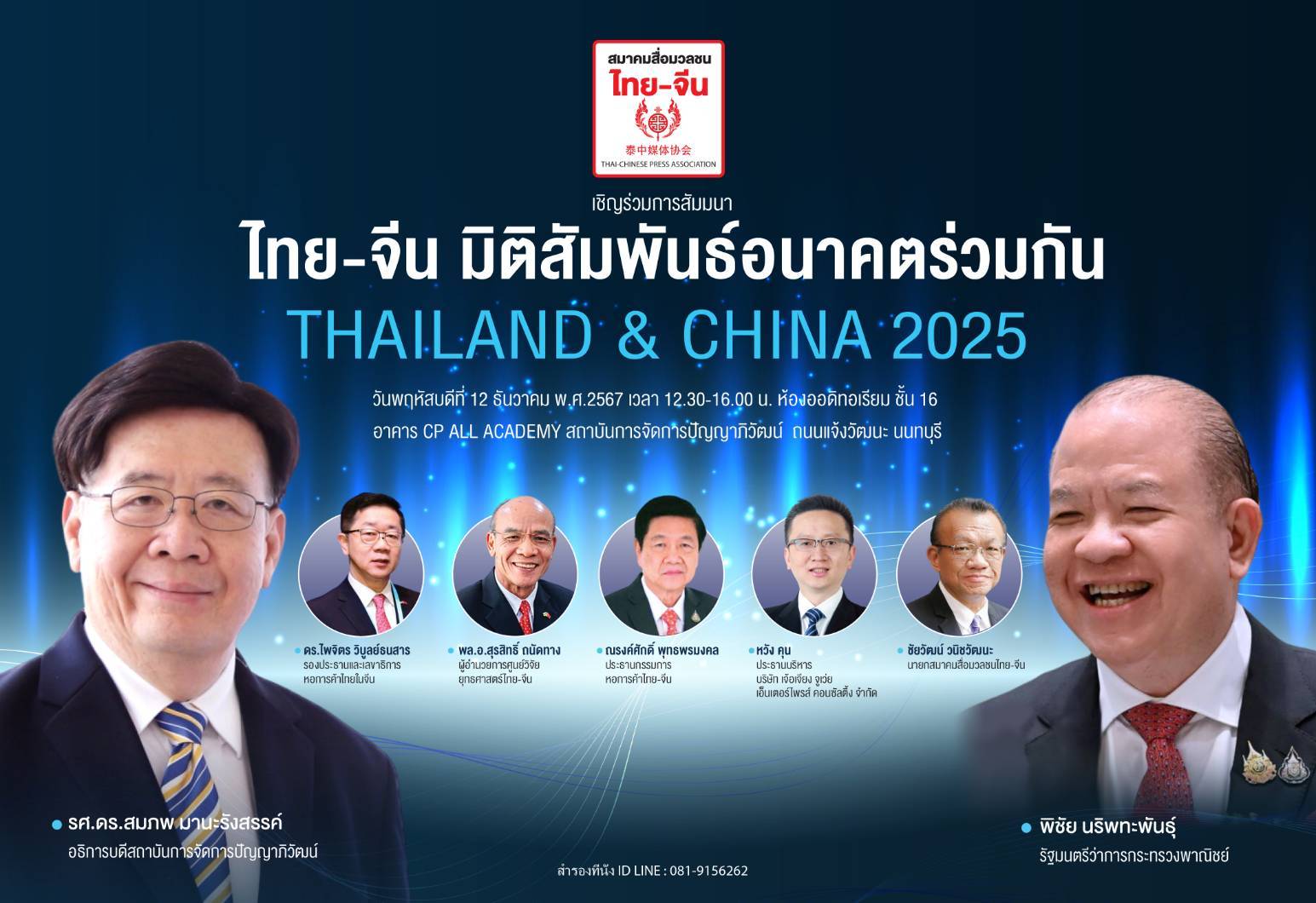สัมมนาไทย-จีนมิติสัมพันธ์อนาคตร่วมกัน 'Thailand&Chaina2025'ใน12ธ.ค.นี้