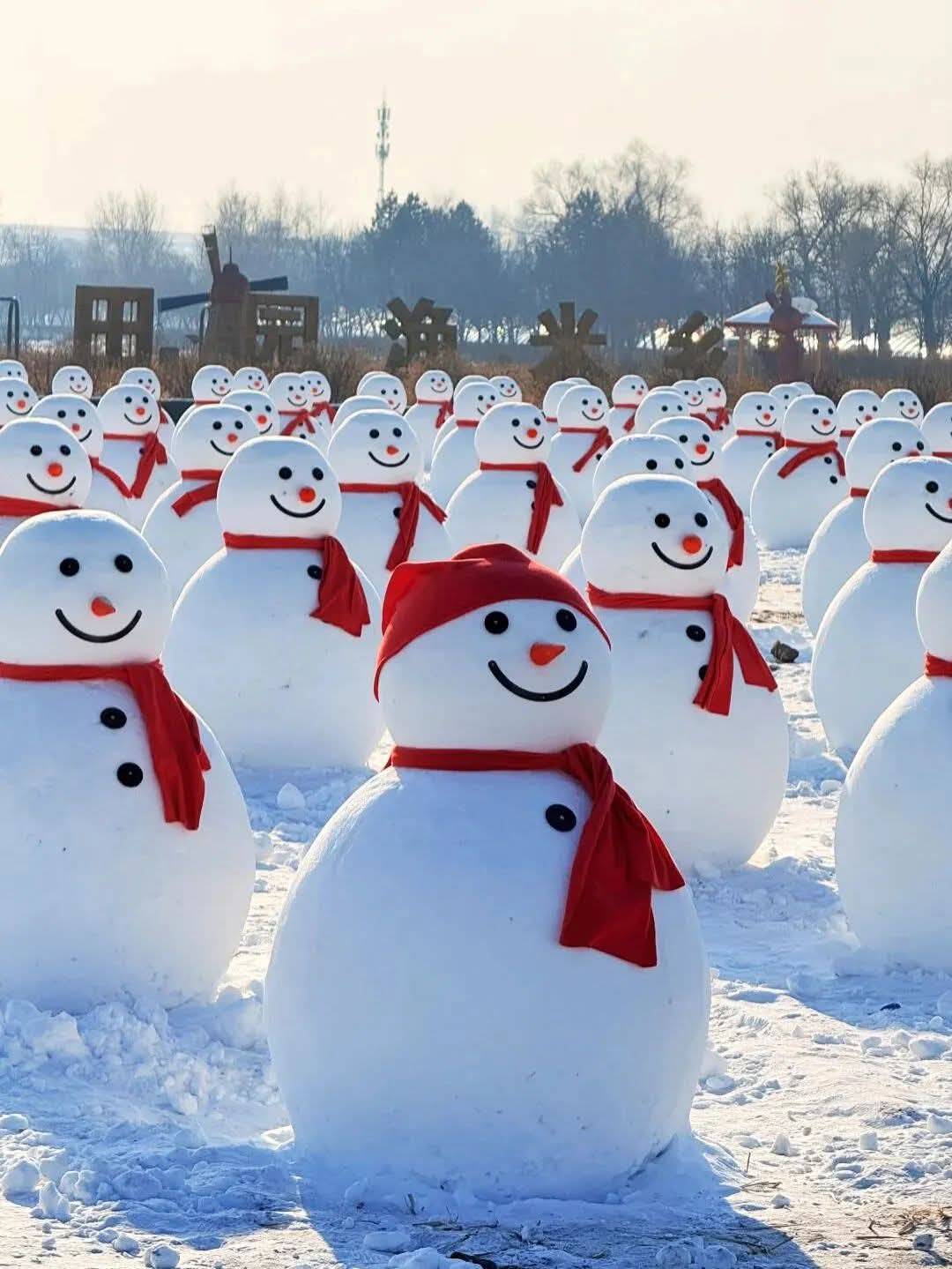 เมืองฮาร์บิน มณฑลเฮยหลงเจียง ตะวันออกเฉียงเหนือของจีน ถูกมนุษย์หิมะยึดครองในช่วงฤดูหนาว ฟาร์มแห่งหนึ่งสร้างตุ๊กตาหิมะขนา...