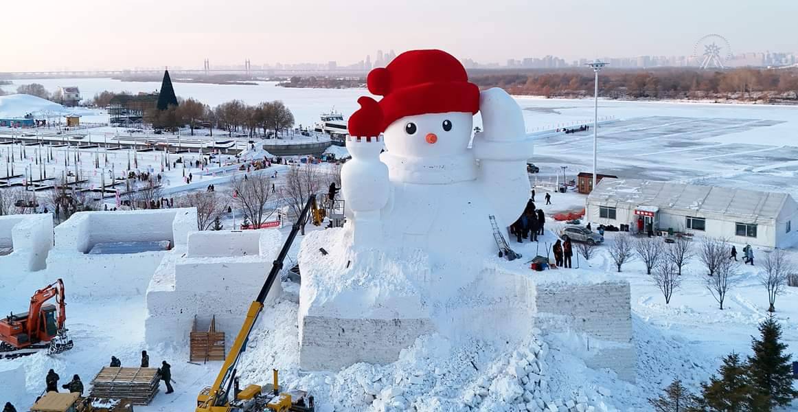 ตุ๊กตาหิมะตัวใหญ่ต้อนรับผู้มาเยือนฮาร์บิน จุดหมายปลายทางยอดฮิตฤดูหนาว