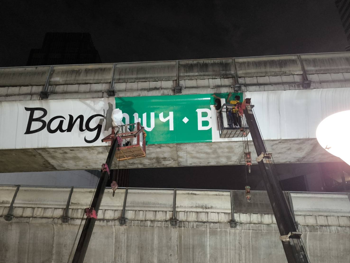 กทม.รุดแก้สติกเกอร์'กรุงเทพฯ-Bangkok' คานรางรถไฟฟ้าแยกปทุมวันปูดพอง