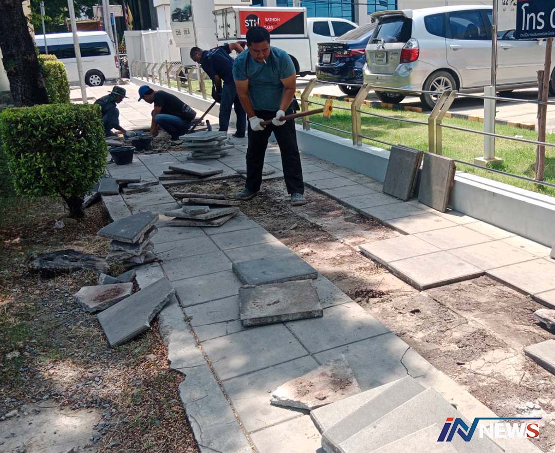 กทม.เร่งซ่อมทางเท้าบนถนนนราธิวาสฯ หน้าศูนย์ฮอนด้าเขตสาทร