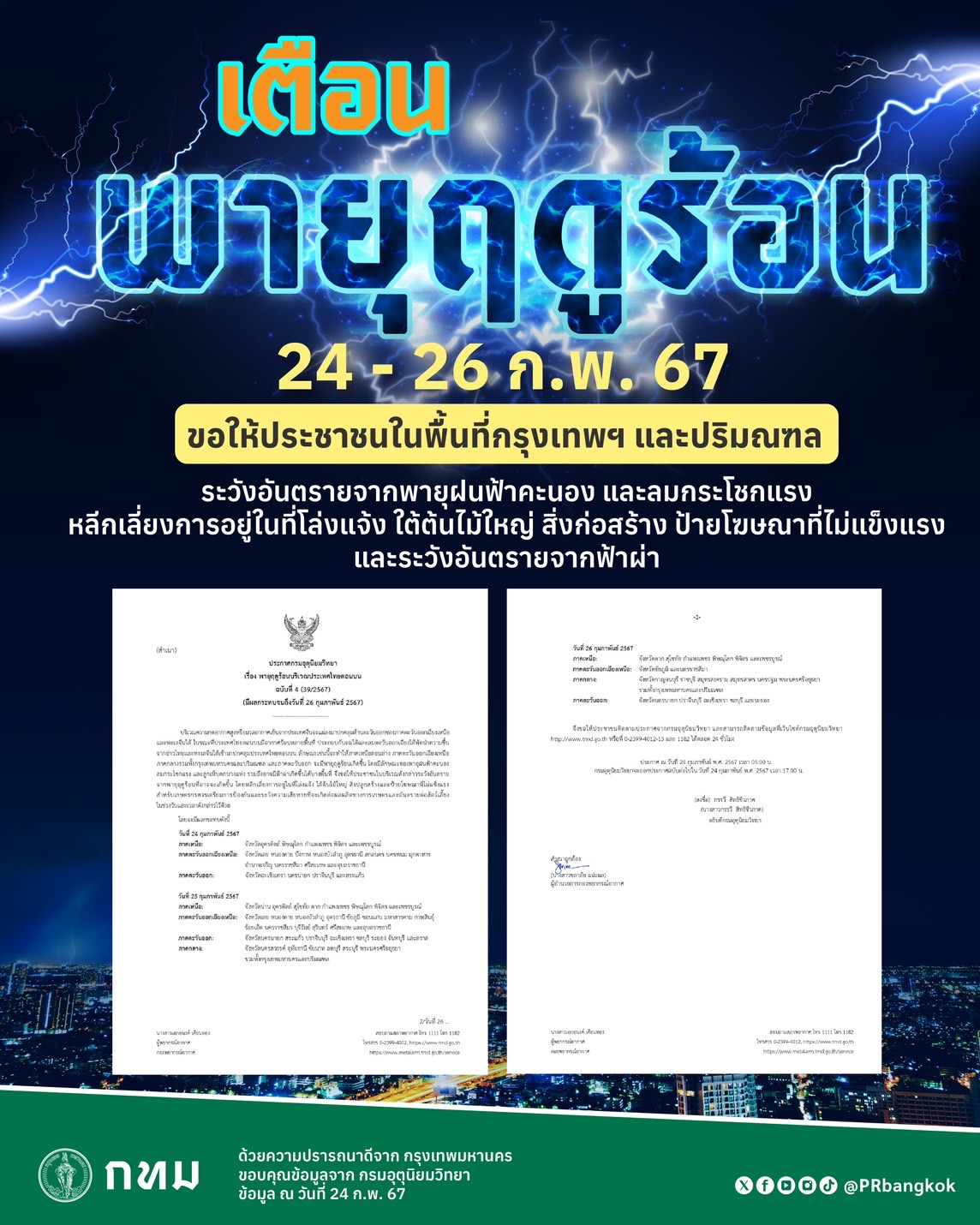 กทม.แจ้งเตือนมีพายุฤดูร้อน24-26ก.พ.นี้ สั่งเฝ้าระวังทุกหน่วยพร้อมรับมือเต็มที่