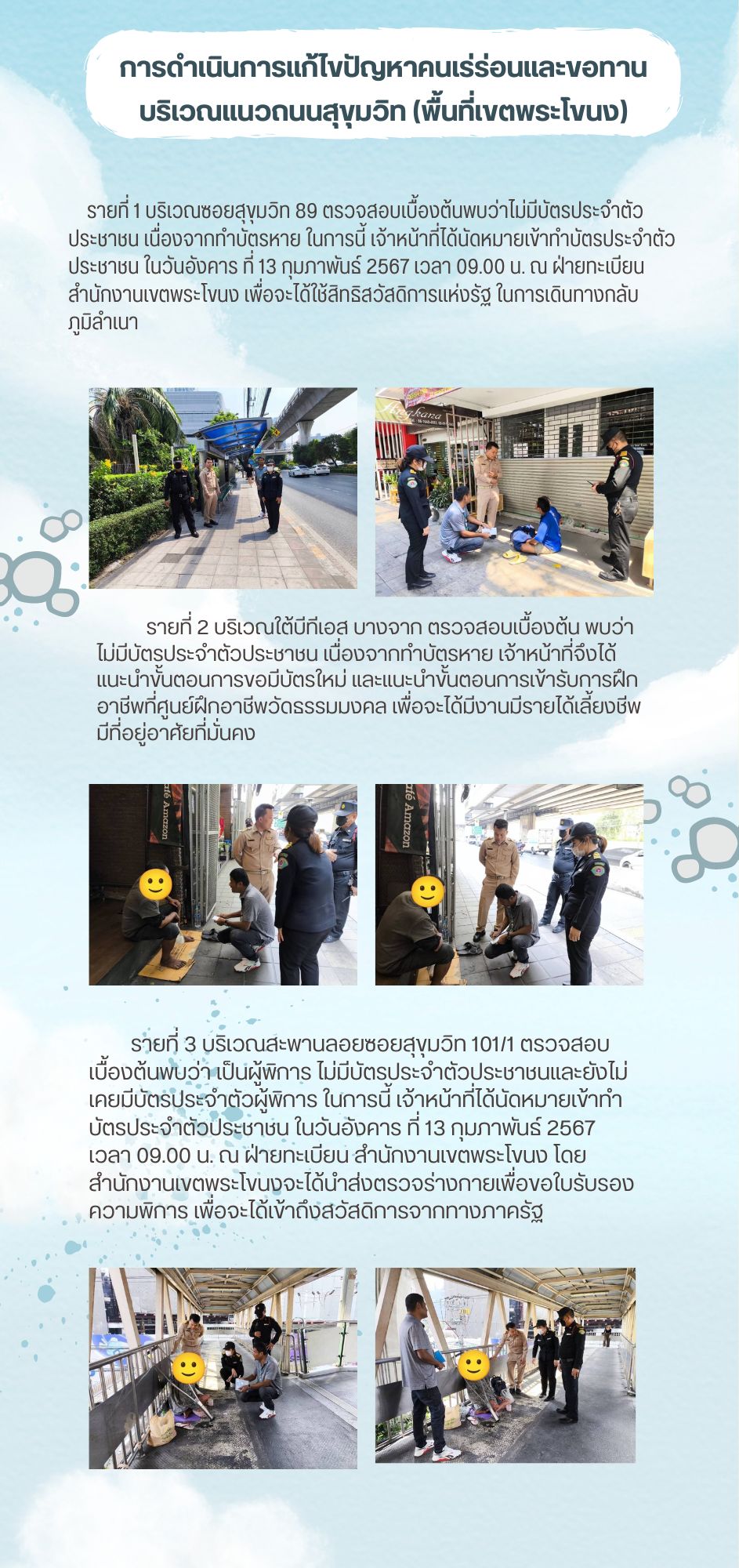 กรุงเทพฯ-เขตพระโขนงเข้มงวดตรวจสอบแก้ปัญหาคนเร่ร่อน ไร้บ้าน ขอทานบริเวณสถานีรถไฟฟ้าแนวถนนสุขุมวิท