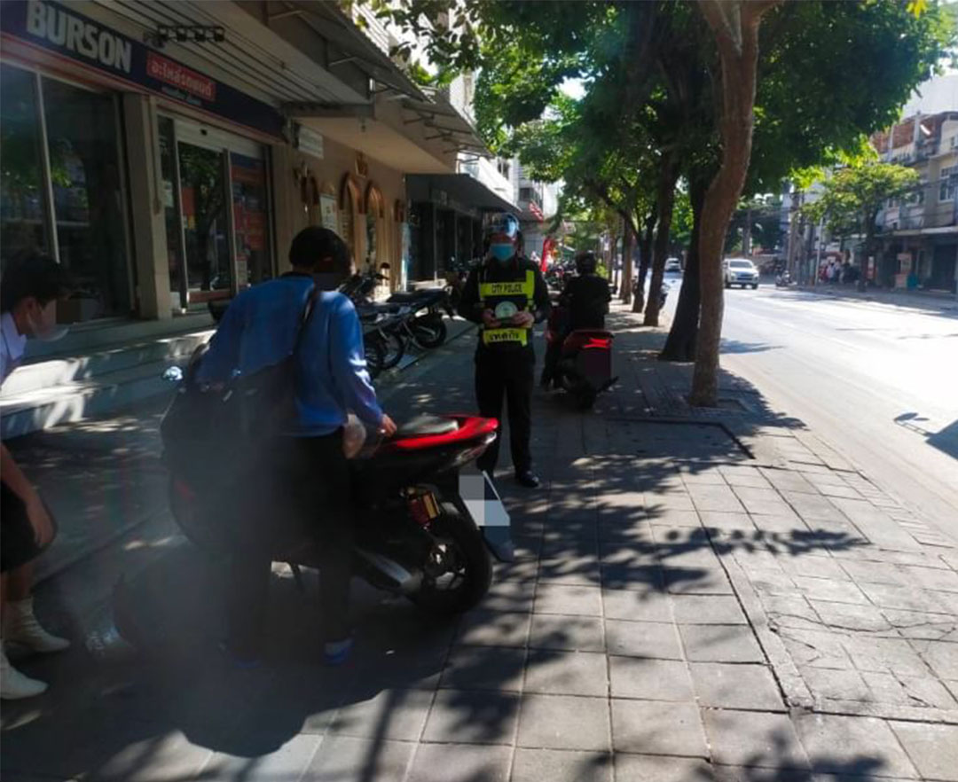 เขตสาทรจัดเทศกิจออกกวดขันรถจยย. ห้ามจอด-ขับขี่รถบนทางเท้าถนนจันทน์