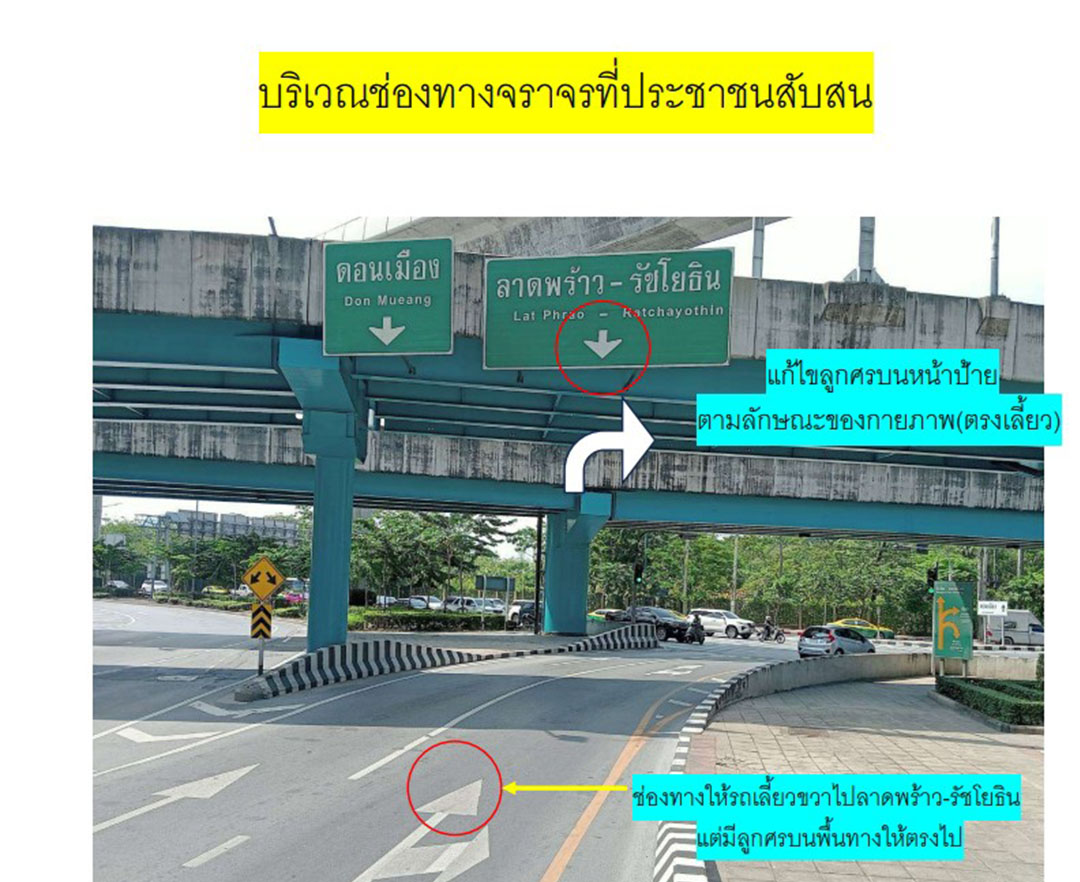 กทม.จี้ทล.แก้ไขเครื่องหมายลูกศร-ป้าย บนสะพานลอยห้าแยกลาดพร้าว