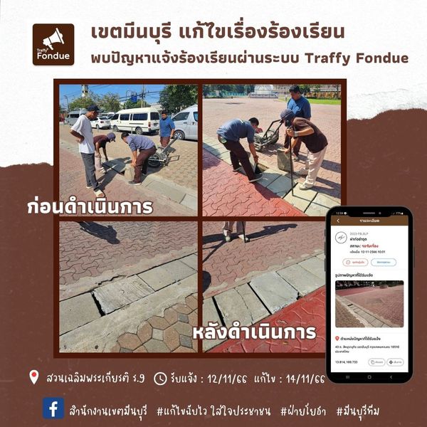 เขตมีนบุรีรุกซ่อมฝาท่อระบายน้ำที่ชำรุด รอบสวนเฉลิมพระเกียรติร.9