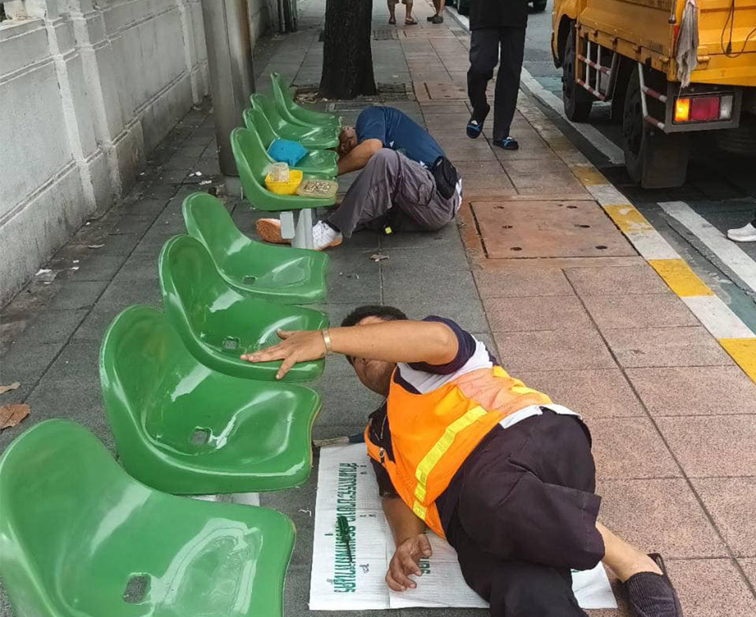 กทม.ซ่อมเก้าอี้นั่งรอรถโดยสารในพื้นที่ เขตดุสิตและหน้าโรงละครแห่งชาติ