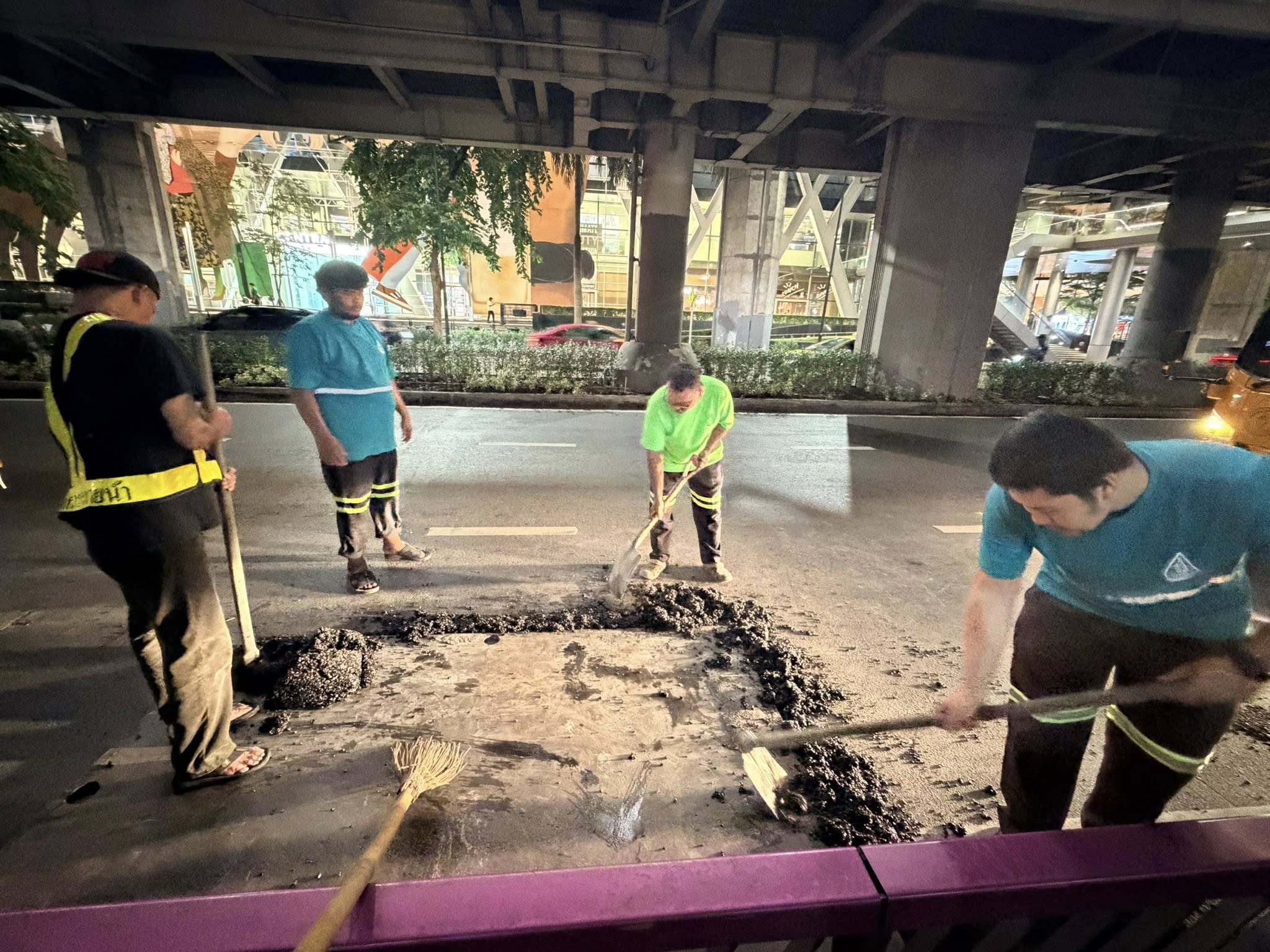 กทม. รุดแก้ไขถนนพระรามที่ 1 ทรุดตัว หน้า รพ.ตำรวจ ป้องกันอันตรายผู้ใช้ถนน