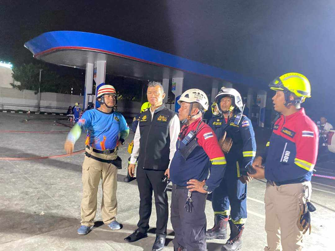 กทม.จัดดับเพลิงเฝ้าระวังเหตุเพลิงไหม้ ในปั๊มน้ำมันใกล้สะพานลาดกระบังถล่ม