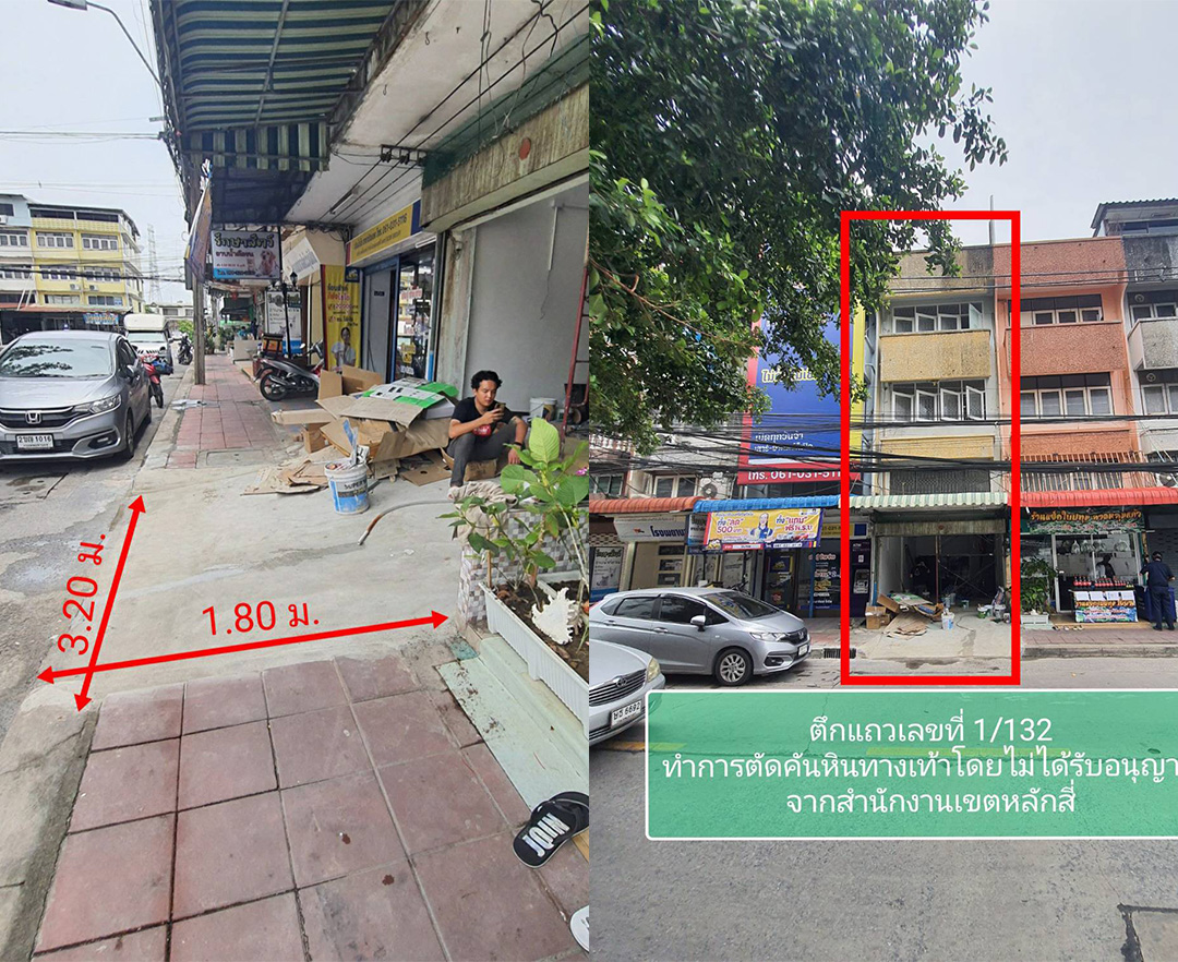 เขตหลักสี่ตรวจสอบทุบทางเท้าสร้างเป็น ทางลาดเข้าบ้านโดยไม่ได้รับอนุญาต