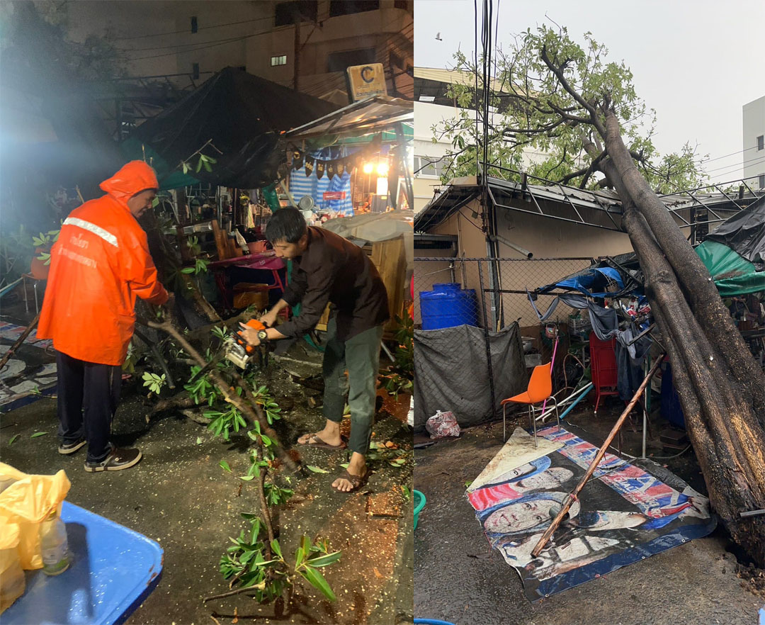 เขตวังทองหลางแก้ไขเหตุต้นไม้โค่นล้ม ทับบ้านเรือนประชาชนในซอยรามฯ39