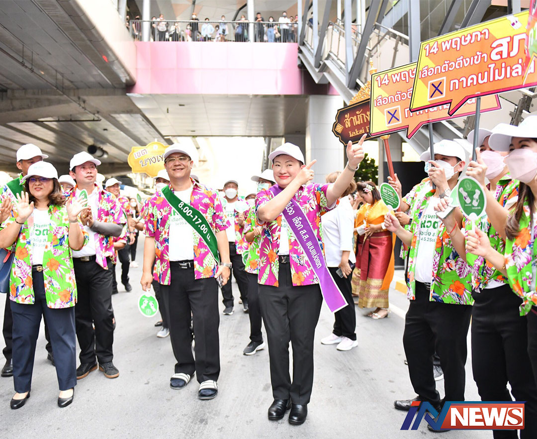กรุงเทพฯ-รองปลัดนำคณะผู้บริหารกรุงเทพกลางตะลุยเยาวราช ชวนใช้สิทธิเลือกตั้ง ส.ส. 14 พฤษภา พร้อมเตือนระมัดระวังข้อห้ามตามท...