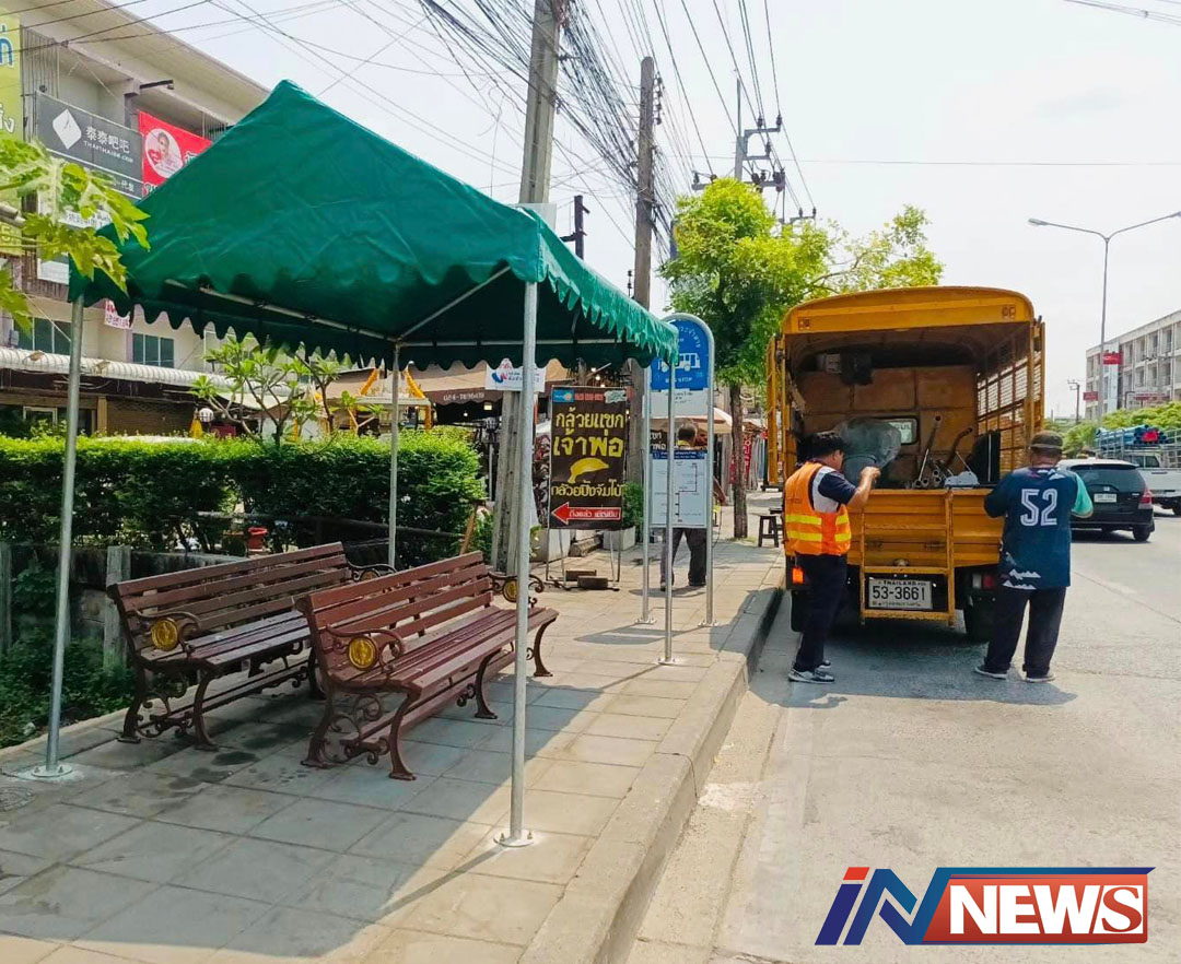 กทม.ติดตั้งศาลาที่พักผู้โดยสารชั่วคราว ที่ถนนเลียบคลองสองช่วยประชาชน