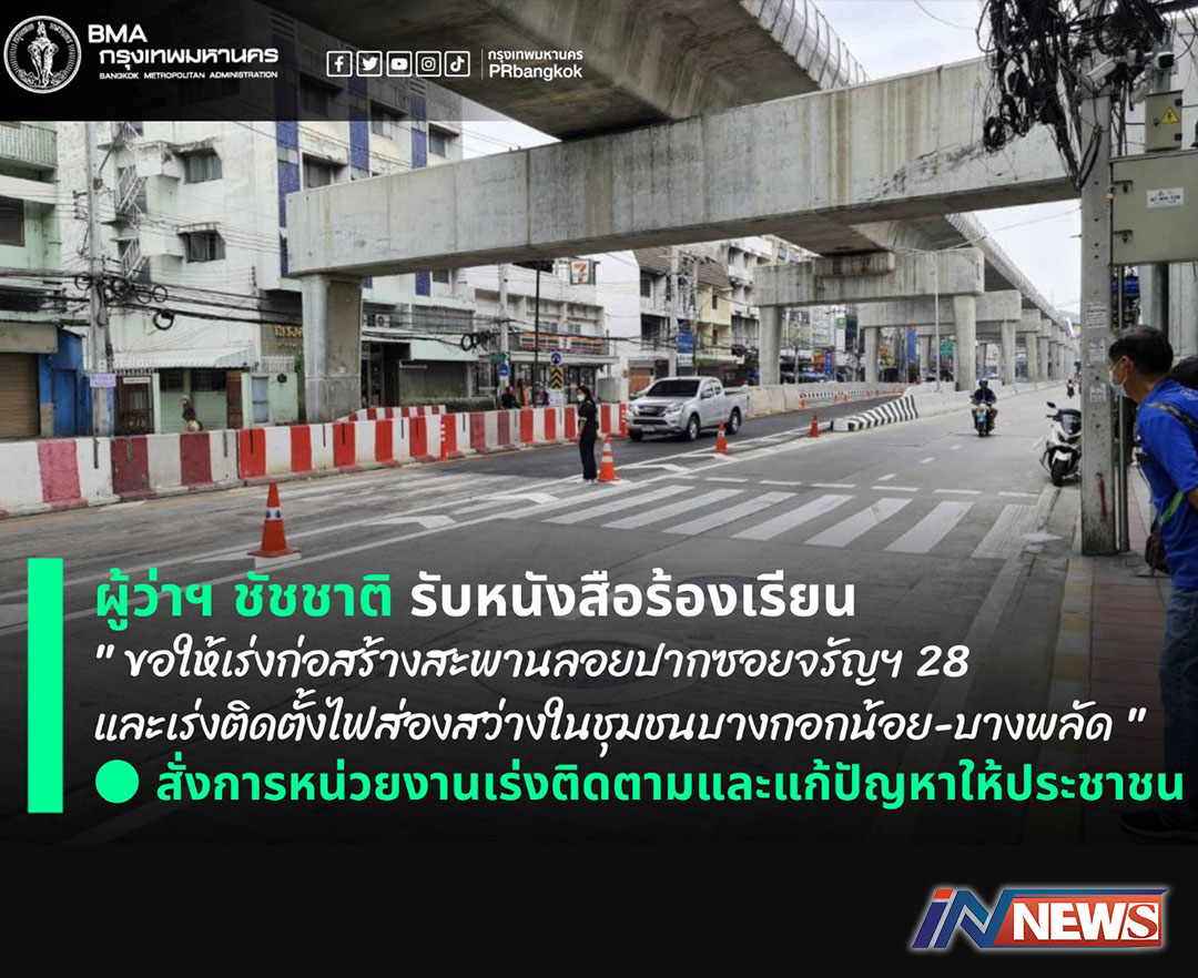 ผู้ว่าฯกทม.รับเรื่องร้องเร่งสร้างสะพานลอย ปากซอยจรัญ28-ติดไฟส่องสว่าง