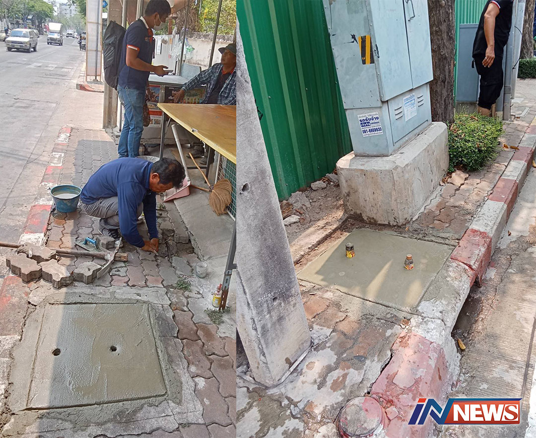 สนย.ซ่อมแซมฝาท่อระบายน้ำในบริเวณ ถนนพุทธบูชาเขตจอมทองที่ชำรุด