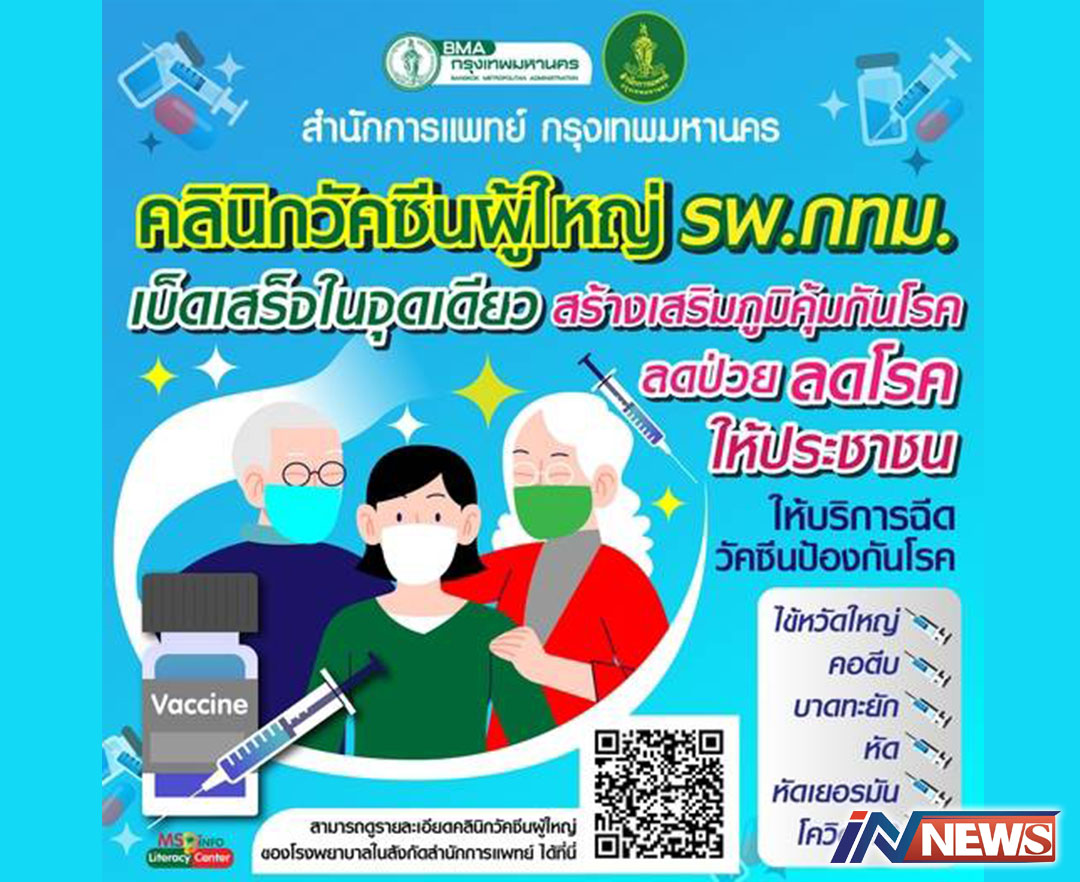 กทม.แนะสร้างภูมิคุ้มกันโรคด้วยวัคซีน เปิดให้บริการคลินิกวัคซีนผู้ใหญ่11รพ.