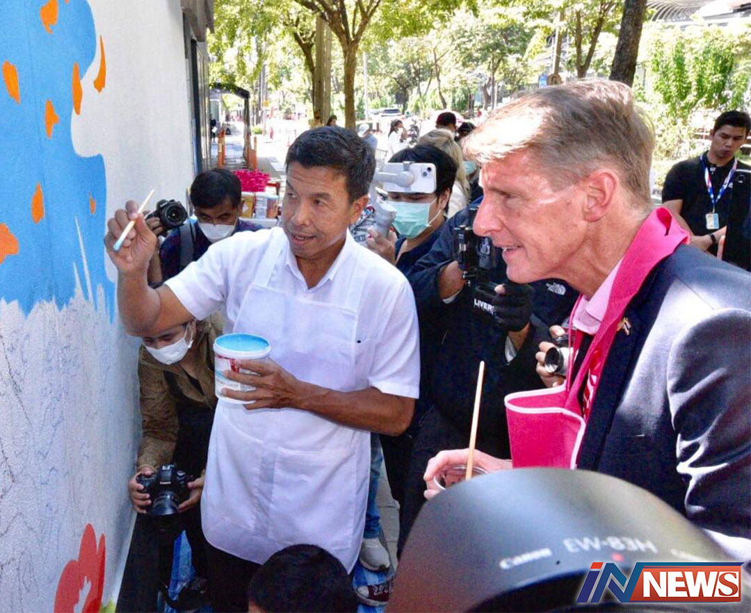 'ผู้ว่าฯชัชชาติ'ตวัดฝีแปรงวาดบนกำแพง สถานฯทูตสหรัฐฯ 'We Are Tomorrow'