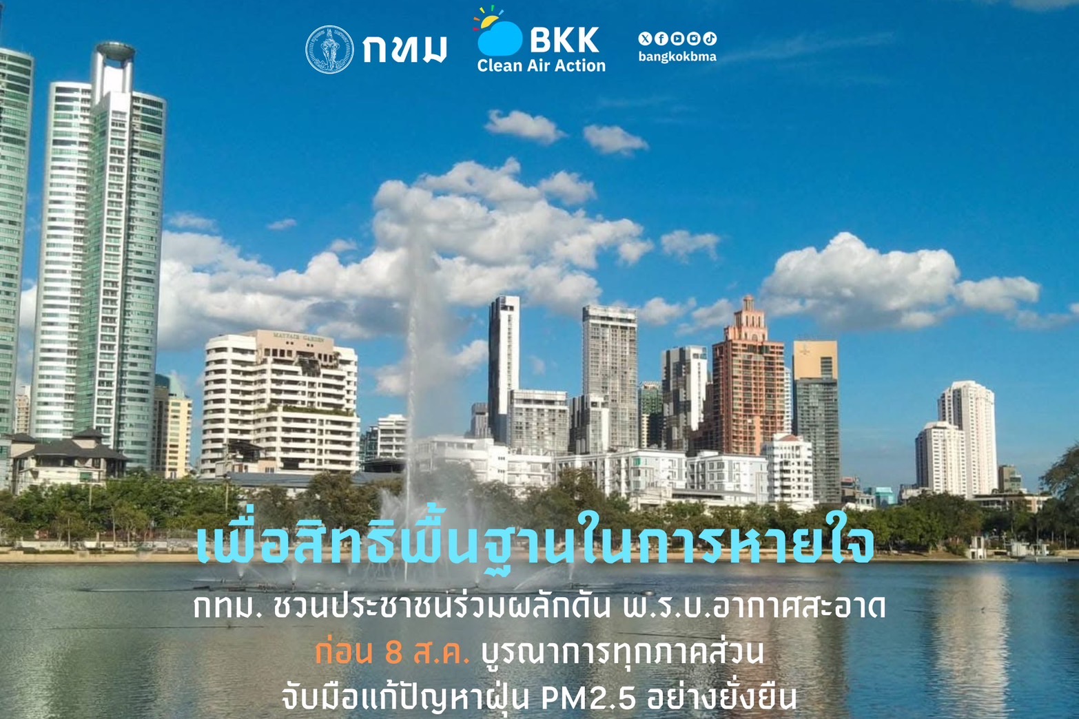 กทม.ชวนร่วมผลักดันพรบ.อากาศสะอาด ก่อน8ส.ค.ร่วมทุกภาคส่วนแก้ฝุ่นPM2.5