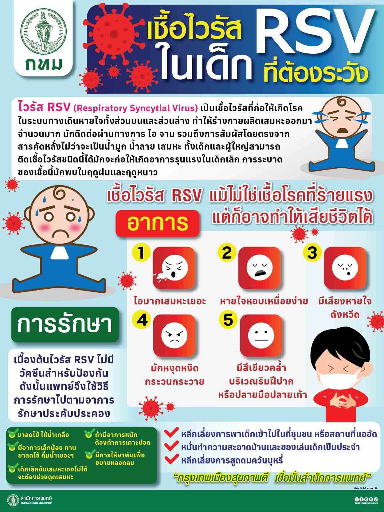 กทม.สั่งเฝ้าระวังป้องกันไวรัสRSVฤดูฝน เตรียมสถานพยาบาลดูแลรักษาผู้ป่วย