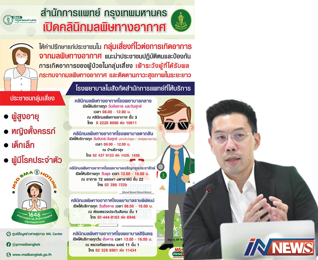 กรุงเทพฯ-โฆษกกทม. เปิดคลินิกมลพิษทางอากาศโรงพยาบาลในสังกัด 5 แห่ง ให้คำแนะนำดูแลกลุ่มเสี่ยง
