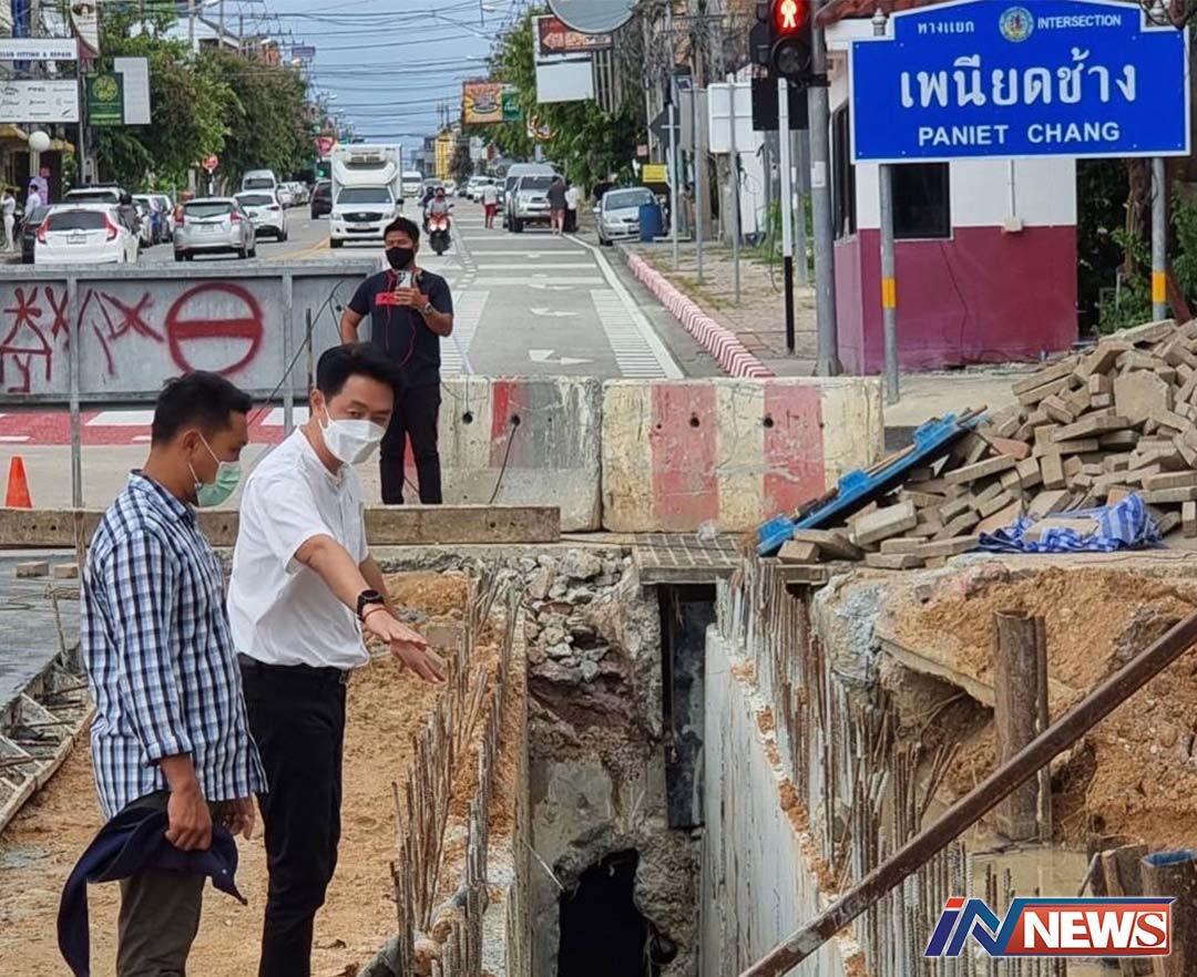 พัทยาตรวจวางท่อระบายน้ำแยกเนียดช้าง ล่าสุดเทคอนกรีตแล้วใกล้คืนผิวจราจร