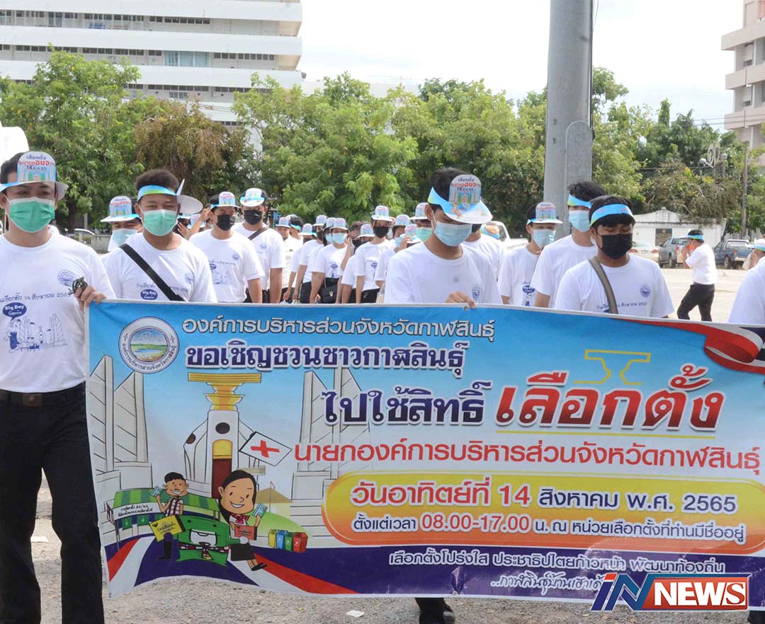 กาฬสินธุ์เดินรณรงค์ชวนใช้สิทธิ์เลือกตั้ง นายกอบจ.เมืองน้ำดำ14สิงหาคมนี้
