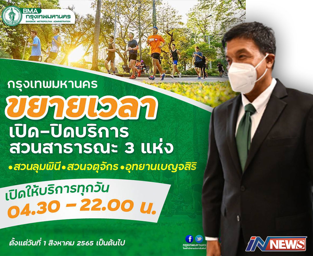 เริ่ม1 ส.ค.นี้3สวนใหญ่เริ่มเปิดตีสี่ถึง4ทุ่ม 'สวนลุมพินี-จตุจักร-เบญจสิริ'
