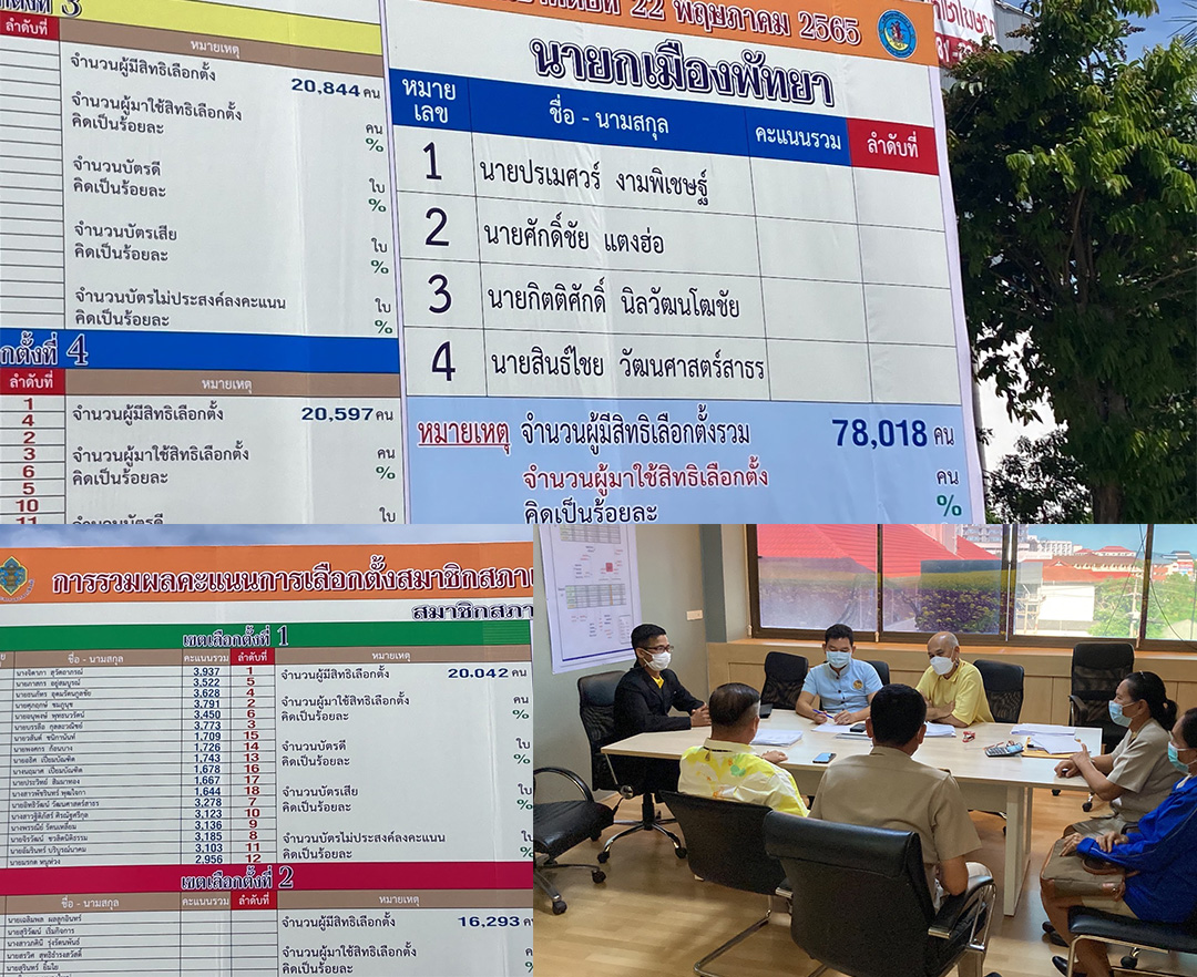พัทยา-สำนักงานคณะกรรมการการเลือกตั้งประกาศผลการรวมคะแนนนายกเมืองพัทยา อำเภอบางละมุง จังหวัดชลบุรี ปรเมศวร์ เรารักพัทยา ม...
