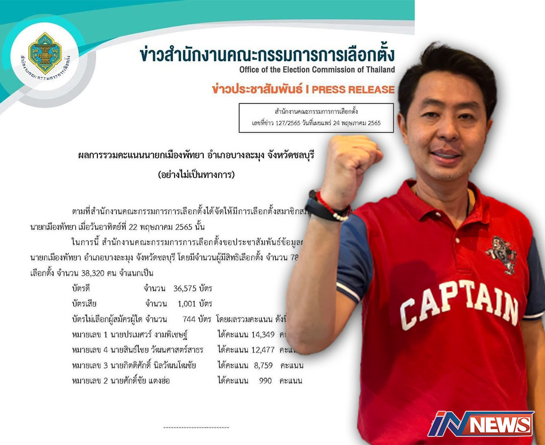 กกต.ได้ประกาศผลนายกเมืองพัทยาแล้ว 'ปรเมศวร์'ขึ้นแท่นว่าที่นายกเมืองพัทยา