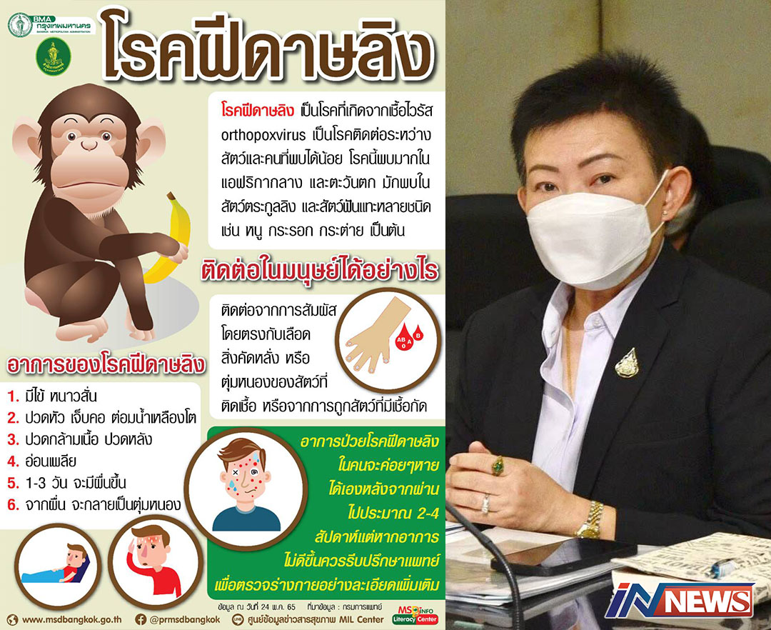 กทม.พร้อมเฝ้าระวังโรคฝีดาษลิงใกล้ชิด ชี้เชื้อไวรัสนี้พบในสัตว์ฟันแทะลิง หมูป่าฯ