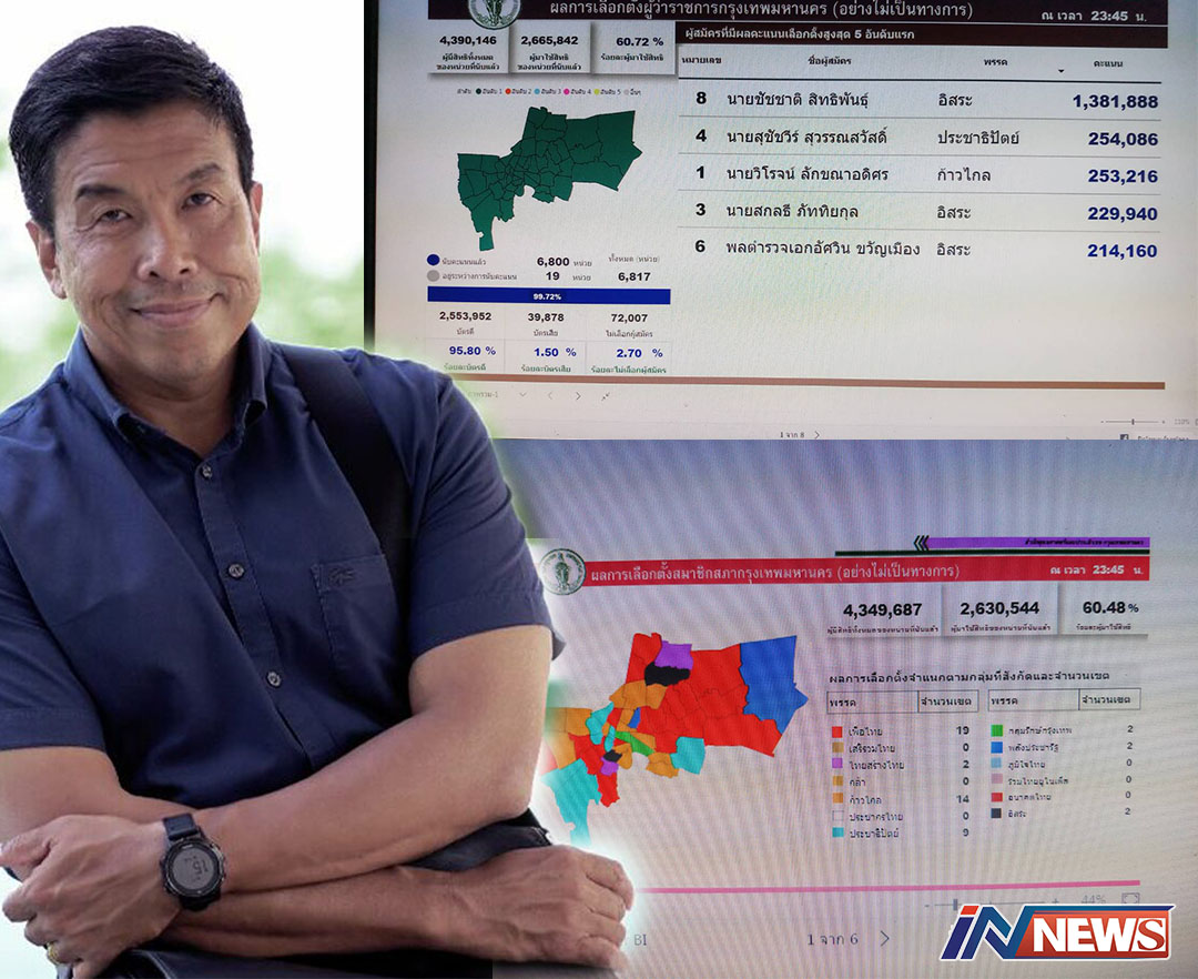 กรุงเทพฯ-ประกาศผลไม่เป็นทางการ ผู้สมัครผู้ว่าฯ หมายเลข 8 นายชัชชาติ คะแนนนำสูงสุด หลังนับคะแนนครบ 99.25 %