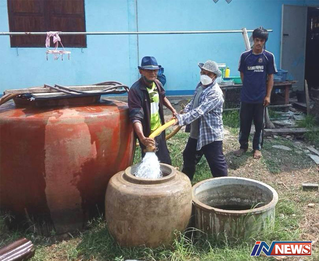 ลพบุรี-นายกเทศมนตรีตำบลสระโบสถ์ นำรถน้ำไปแจกจ่ายน้ำให้ชาวบ้านบรรเทาภัยแล้ง