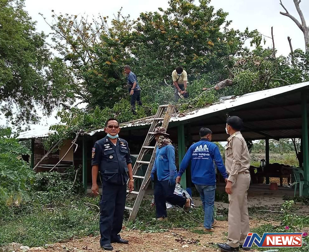 ลพบุรี-องค์การบริหารส่วนตำบลหนองทรายขาวลงพื้นที่ซ่อมแซมบ้านเรือนราษฎรที่ได้รับผลกระทบเนื่องใน พายุ พัดบ้านเรือนได้รับควา...