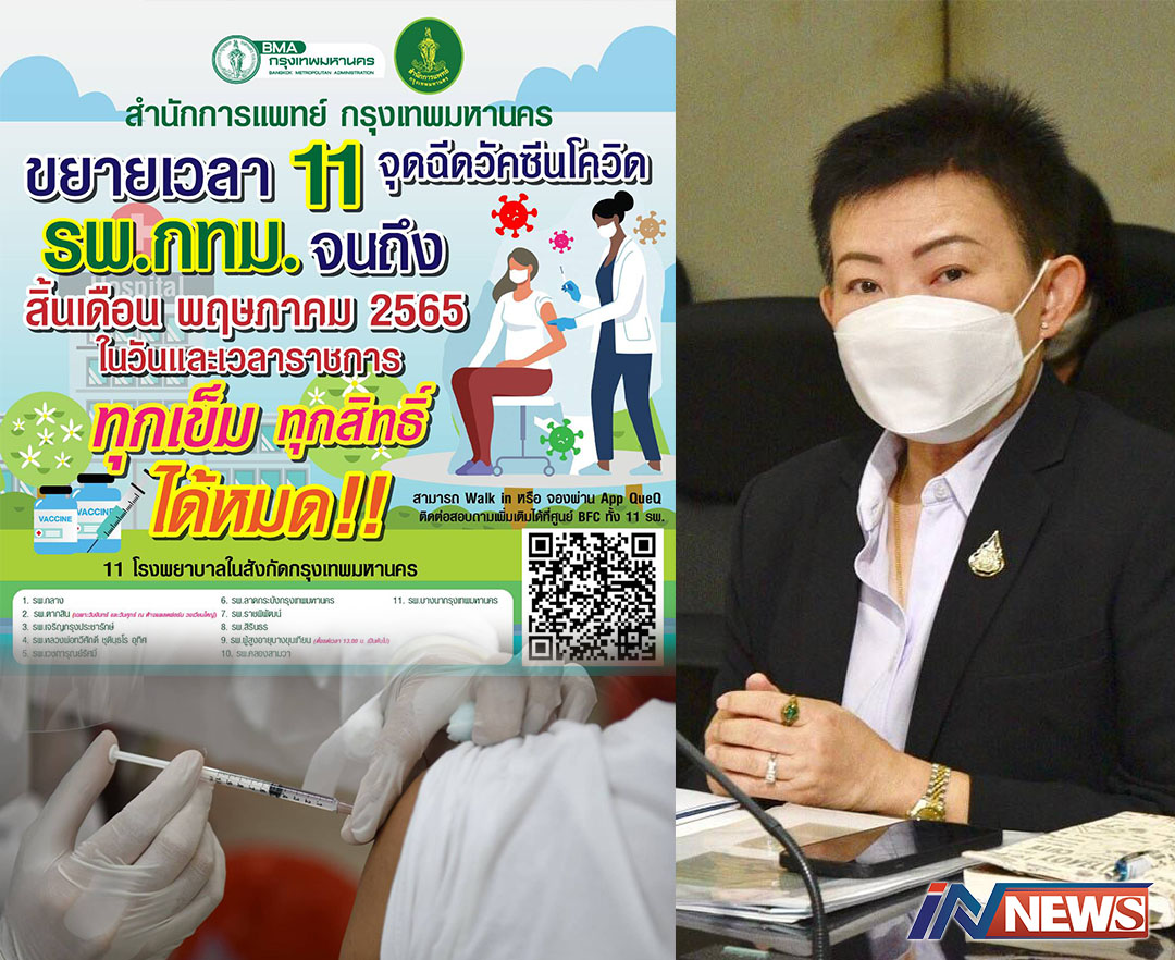 กรุงเทพฯ-รองปลัดกทม.เผยได้ให้สำนักการแพทย์ขยายเวลาฉีดวัคซีนโควิด-19 ใน 11 รพ. สังกัด กทม. ถึงสิ้นเดือน พ.ค. นี้